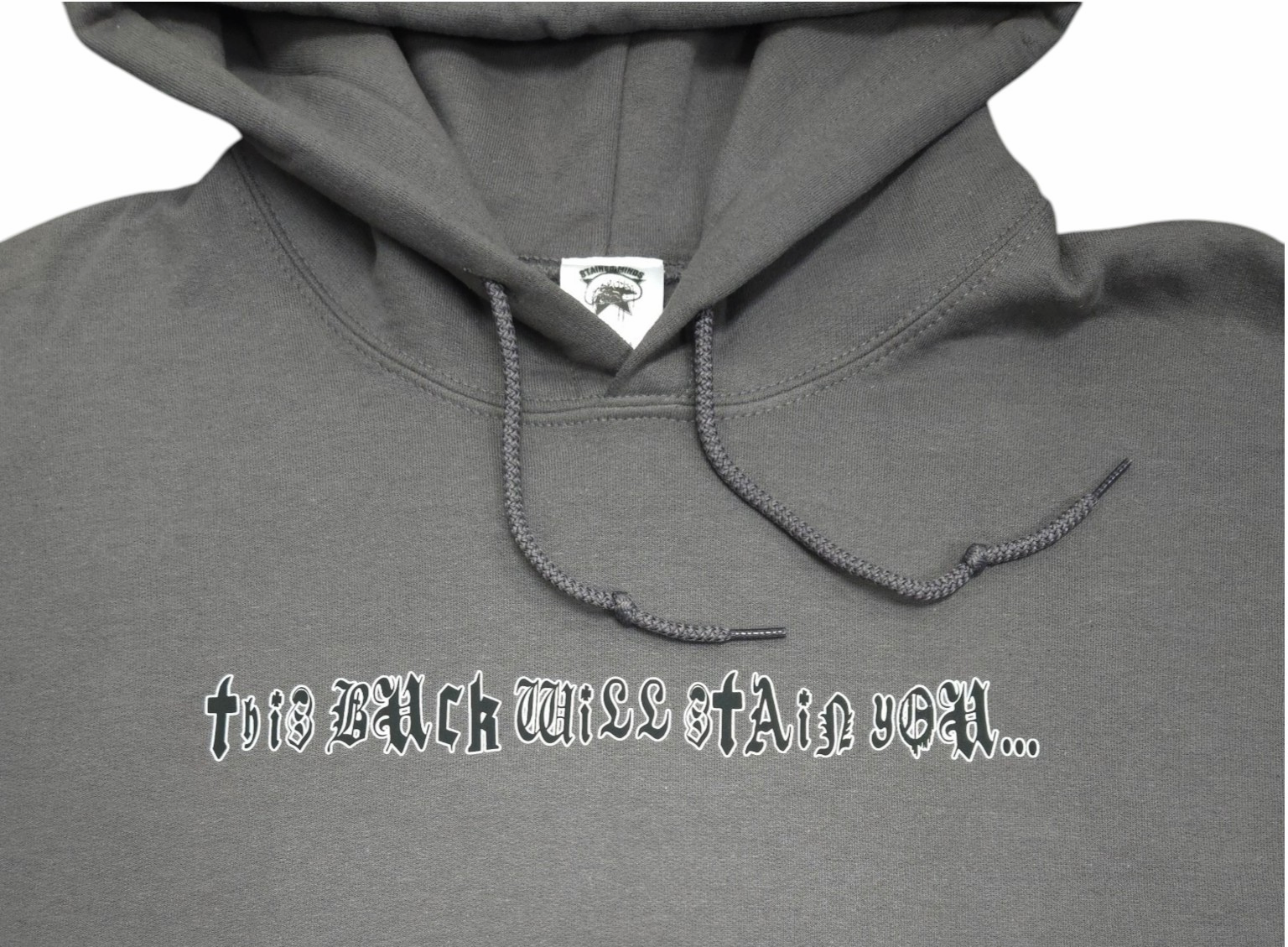 The back features oversized “Stained Buck” typography with a small Stained Minds logo, sealing the piece with brand authority and cultural intent.